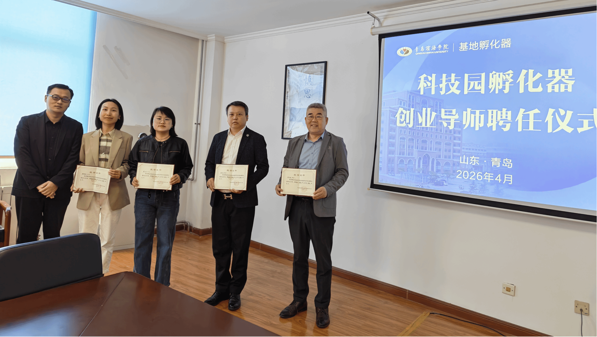 近日,青岛滨海学院科技园孵化器创业导师聘任仪式在昌德楼606会议室举行。此次仪式旨在充实导师队伍、完善孵化服务体系,切实提升在孵企业创业成功率。